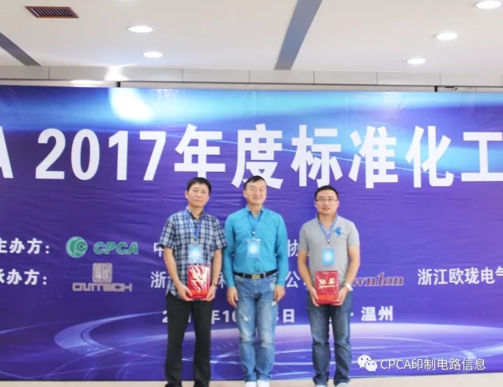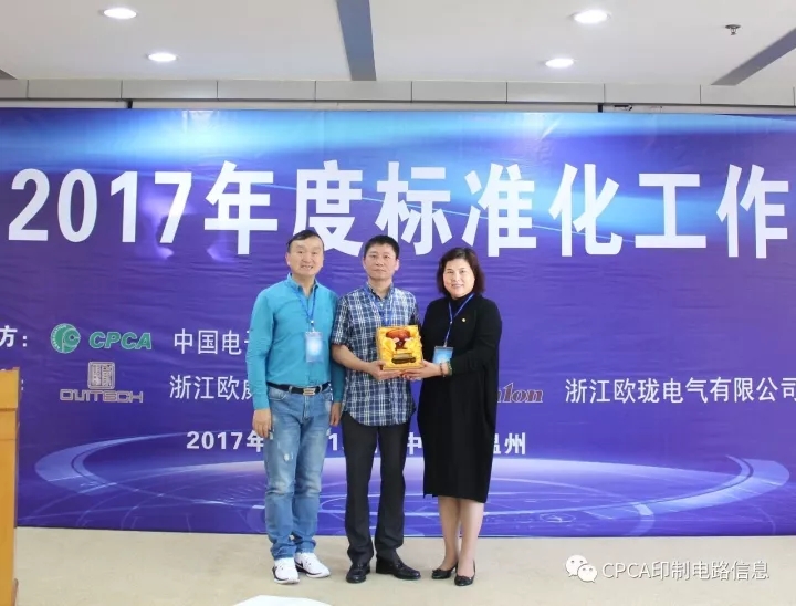 结合2017年度标准开展情况,10位优秀工作个人、2个标准成果奖、1个标准工作贡献奖授出,10位优秀工作个人分别是:戴炯、马步霞、任尧儒、罗小阳、曾平、刘东、苏新虹、刘镇权、黄生荣、陈世金。标准成果奖是:《高密度互连印制板技术规范》、《印制板安全性能规范》;标准化工作贡献奖是浙江欧珑电气有限公司。