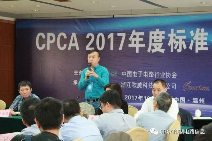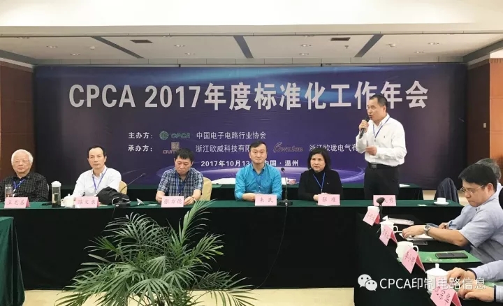 2017年10月13日在温州雁荡山山庄举行了2017年度标准化工作会议。CPCA名誉秘书长王龙基、CPCA秘书长张瑾、CPCA标委会主任朱民、副主任王成勇及马明诚、原CPCA标委会会长陈文录、浙江欧珑电气、欧威科技有限公司董事长张方德、CPCA标委会秘书陈易丽及PCB行业60余位标委会委员出席了会议。