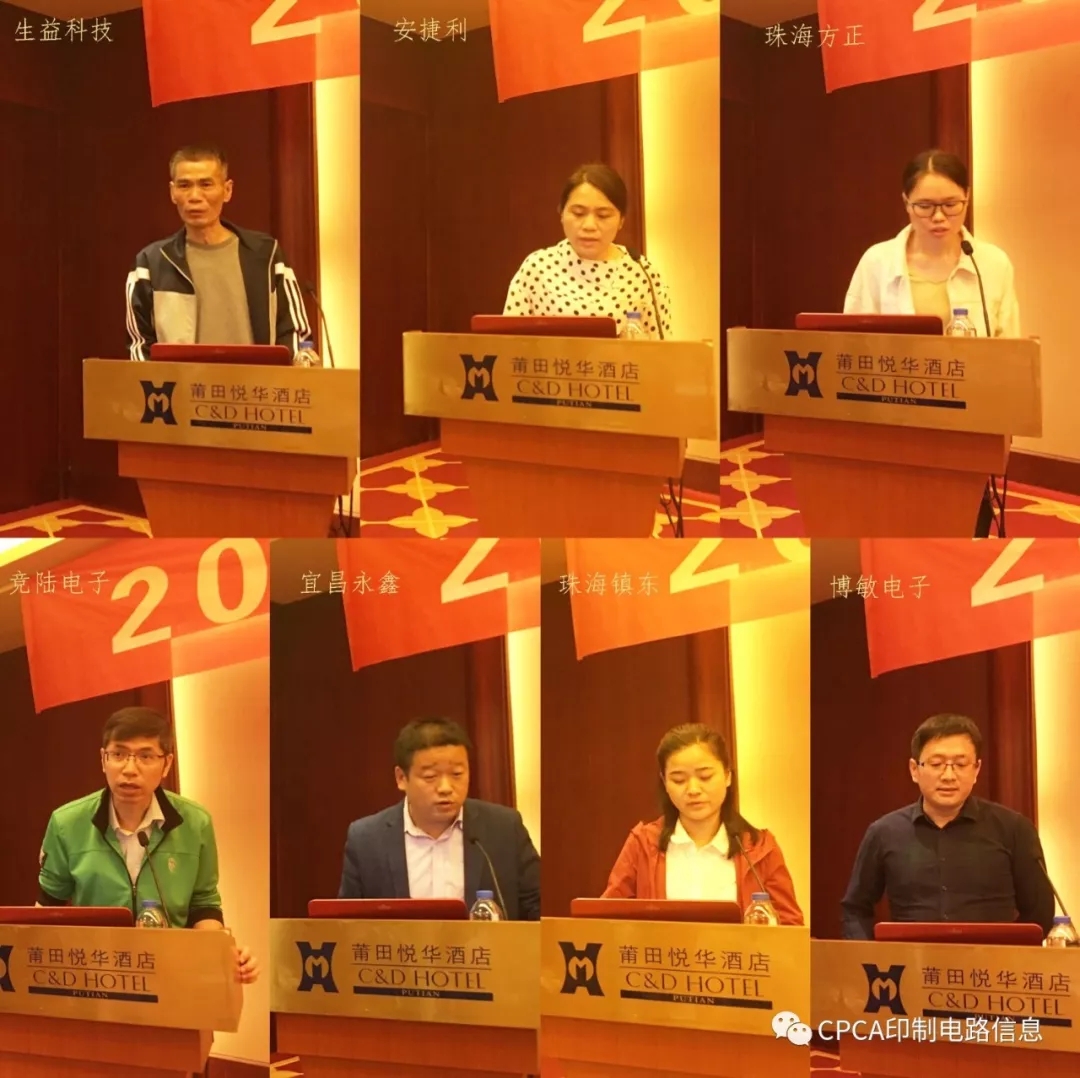深圳正天伟科技有限公司陈良、四会富仕电子科技有限公司徐朝晨、麦克罗泰克(常州)产品服务有限公司张盘新、欣强电子(清远)有限公司雷红慧、江苏苏杭电子有限公司杨存杰、浙江华正新材料股份有限公司沈宗华、成都航天印制板事业部马忠义。