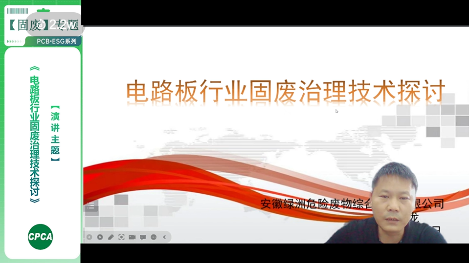 电路板是几乎所有电子设备和电器设备的重要部件,随着社会经济的迅速发展,电路板的产量也在增加,随之出现的液、固体危险废物也在增加,其中含有多种重金属和有毒有害物质,这些物质进入环境不易降解,不断富集,威胁生态环境安全。对这些危险废物进行综合利用,具有重要的环保意义。2023年6月20日下午,CPCA开启PCBESG系列——【固废】专题,邀请安徽绿洲危险废物综合利用有限公司生产副总付二龙作主题为《电路板行业固废治理技术探讨》的演讲。演讲嘉宾:安徽绿洲危险废物综合利用有限公司生产副总 付二龙演讲主题:电路板行业固废治理技…