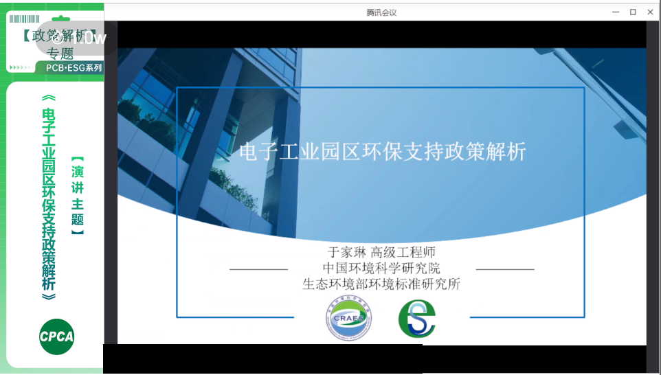 2023年9月14日下午,CPCA开启PCBESG系列——【政策解析】专题演讲,邀请生态环境部环境标准研究所、土壤与固废生态环境标准研究室主任于家琳作主题为《电子工业园区环保支持政策解析》的演讲。生态环境部环境标准研究所土壤与固废生态环境标准研究室主任于家琳于主任首先介绍了我国生态环境标准体系,同时举例河南五里川河流域地表水锑标准与控制目标研究,丽水经济开发区合成革行业DMF污染治理来说明各类生态环境标准的作用,并针对PCB行业介绍了电子工业水污染物排放标准(GB 39731—2020)所涵盖的范围、制订原则,控制要求、监测要求、…