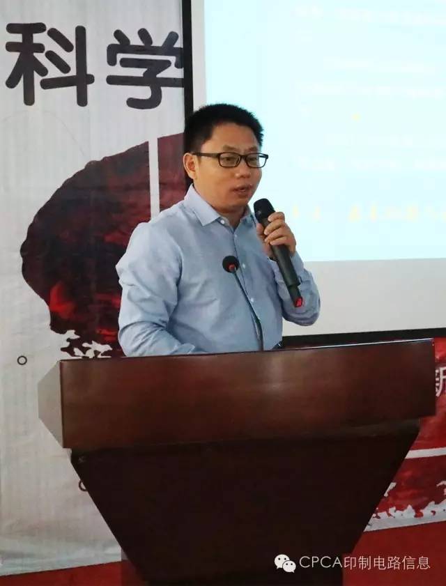 他做了《智能制造与PCB行业发展》报告,介绍了如何面对智能制造的七大技术趋势(TSV技术、化合物半导体、导电涂层材料、AI技术、HDI技术、埋嵌技术),分析了PCB行业存在的问题,智能制造PCB制造全流程分解以及智能制造企业转型再造问题。相信大家一定受益匪浅。