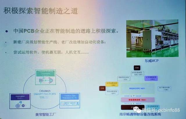 他还指出,中国PCB业智能制造方面还存在着比较大的挑战。因为我们行业还属于密集型、流程跨度长、制程复杂;而我们行业的智能化起步并不早;而且目前行业的智能化还没有具体的统一的标准。