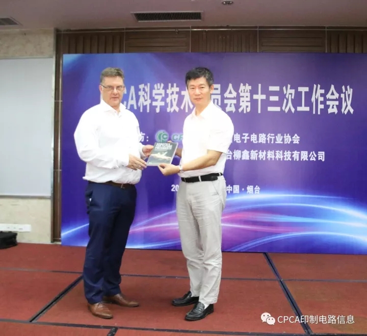 2017年春季和秋季论坛的顺利召开得到了广大企业的积极支持。CPCA科学技术委员会会长黄志东代表委员会向大家表示感谢。CPCA 2016年度论坛优秀演讲论文由广东生益科技股份有限公司冠名,现场黄志东会长向生益科技赠送礼品。