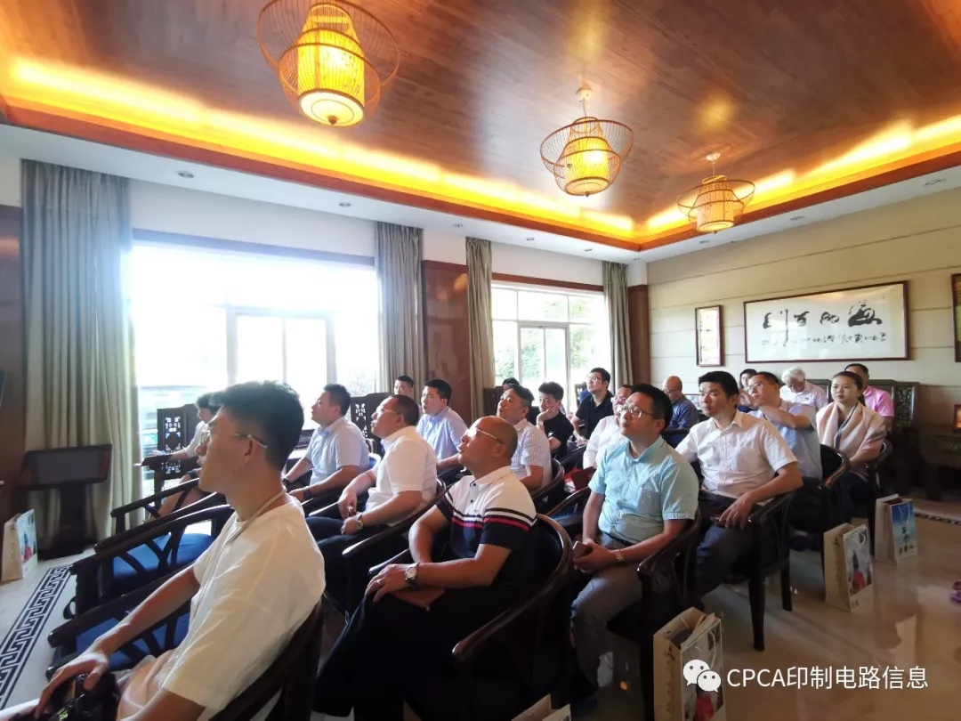 CPCA名誉秘书长王龙基、秘书长张瑾、办公室副主任李琼、诸蓓娜,CPCA科学技术委员会副会长/广合科技总经理曾红、CPCA专用材料分会会长/三和国际集团董事长张华、CPCA专用设备分会会长/大族数控总经理杨朝辉、深圳谷陵电子总经理何柯、博敏电子技术中心主任陈世金、胜宏科技经理施世坤、广东成德电子总工程师刘镇权、惠州中京电子副总经理黄生荣、深圳柳鑫董事长杨柳、承安铜业总经理周建新、广州汉源新材料董事总经理张雪松、深圳松柏副总经理宁秋方、深圳容大销售副总陈武等近20人参会。